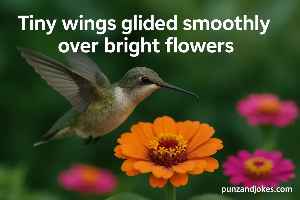 - Gentle wings stayed cheerful while flying over colorful fields.